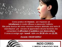 02/05/2016 - 20:30 PROGRAMMA del CORSO:- Comunicazione pubblica, le paure e la loro gestione;- Le fasi di un discorso pubblico;- Il linguaggio del corpo e la memoria.Alla parte teorica del corso...