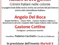 11/12/2015 - 21:00 Per il ciclo "La Grande Storia" Italiani brava gente? Crimini italiani nelle colonie.Con Angelo Del Boca e Gastone Cottino.