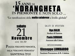 21/11/2015 - 16:30 A Santena (Sala Visconti Venosta) sabato 21 novembre alle ore 16:30 si terrà la conferenza “15 ANNI DI ‘NDRANGHETA IN PIEMONTE E NON SOLO… - Le ramificazioni...