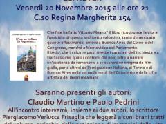 20/11/2015 - 21:00 “C’era un italiano in Argentina…” di Claudio Martino e Paolo Pedrini, pubblicato da Hever Edizioni. Il saggio ricostruisce la vita di Vittorio Meano,...