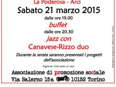 Alle 19,00 buffet. Alle 20,30 musica jazz con il duo Canavese-Rizzo.