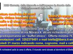 24/03/2018 - 17:30 SABATO 24 MARZO ALLE ORE 17,30, SOTTO I PORTICI DEL COMUNE DI BIELLA, LIBERA, NEL GIORNO DELLA MEMORIA DELLE VITTIME DI MAFIA, ORGANIZZA UNA GIORNATA RICORDO, DOVE VERRANNO LETTI...