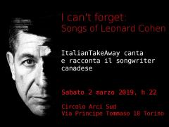 02/03/2019 - 22:00 Il progetto "Italian Take Away" porta per la prima volta a Torino uno spettacolo su Leonard Cohen. Uno show tra canti e racconti con ospiti e con alcuni dei migliori...