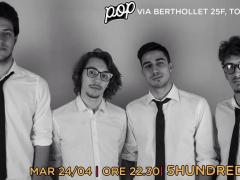 24/04/2018 - 22:30 Martedì 24 aprile arrivano al POP i Five Hundred, una band composta da 6 membri: Riccardo Ceccarelli (chitarrista e cantante),Erik Brienza (batterista),Gianluca Donnarumma (...