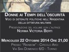 22/10/2014 - 21:00 Presentazione del libro "Donne al tempo dell'oscurità, Voci di detenute politiche nell'Argentina della dittatura militare", di Norma Victoria Berti.