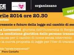 17/04/2014 - 20:30 Maurice GLBTQ, Rete Lenford e Servizio lgbt della Città di Torino presentano:Diritti in transito. Presente e futuro della legge sul cambio di sesso.