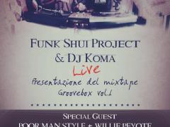 08/03/2013 - 22:00 Presentazione ufficiale del mixtape “Groovebox vol.1″.Funk Shui Project & Dj Koma in un live set e dj set ricco di cool sounds dal gusto jazz/hip hop/funk.