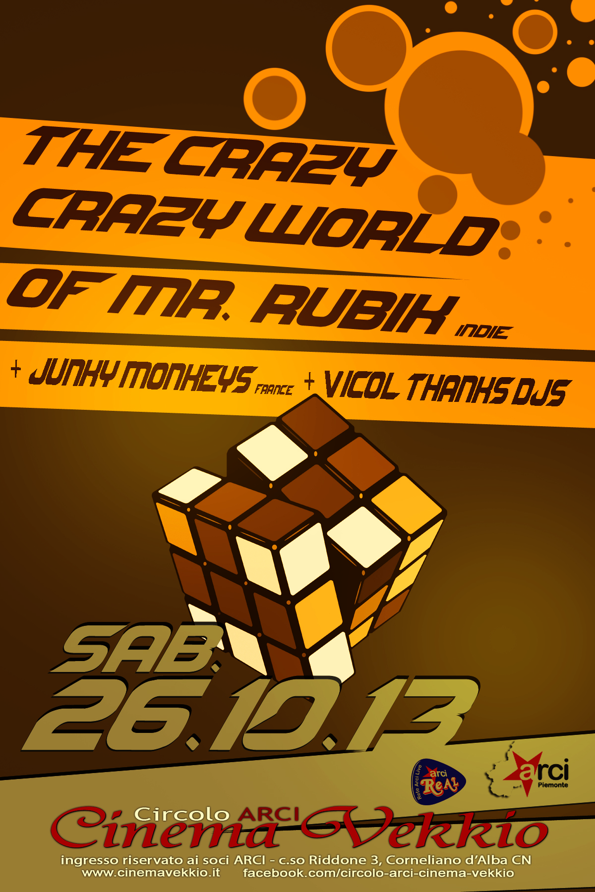 SABATO 26 OTTOBRE: THE CRAZY CRAZY WORLD OF MR. RUBIK (Rock Elettronico/etnico from Bologna) + Junky Monkey (rock from France) + Vicol Thanks Djs (two crazy guys from Gallo d'Alba)