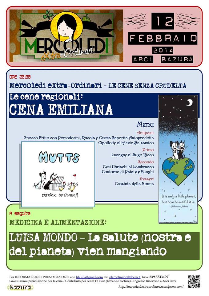 Questo mercoledì primo appuntamento eXtra-Ordinario con la rassegna SALUTE E ALIMENTAZIONE. Idee e consigli per vivere bene senza crudeltà, medicina e alimentazione per animali umani e non umani.