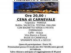 18/02/2017 - 16:00 SABATO 18 FEBBRAIO ALL'ARCI BROVATO FAGIOLATA E CENA DI CARNEVALE