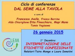 Ciclo di conferenze "DAL SEME ALLA TAVOLA"a cura di Francesca Avalle,...