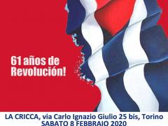 61 años de Revolución!Festa del TesseramentoAssociazione Nazionale di Amicizia Italia CubaCircolo di Torino---ORE 19:30 TesseramentoORE 20:00 Cena di autofinanziamento (carne cruda o alternativa per vegetariani,...