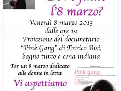 08/03/2013 - 19:00 Il circolo Arci Shanti e scianti e la cooperativa Johar organizzano un 8 marzo dedicato alle donne in lotta con la proiezione del documentario “Pink Gang” di...
