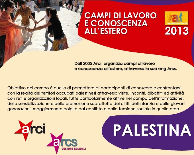 Il Comitato ARCI Valle Susa aderisce al progetto “Campi di Lavoro e Conoscenza” promosso dalla ONG ARCS-Arci Cultura e Sviluppo, come forma di scambio culturale, di solidarietà e cooperazione diretta tra comunità, promuovendo per il quarto anno consecutivo la partecipazione al Campo in Palestina.