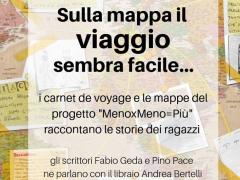 I carnet de voyage e le mappe del progetto "MenoxMeno=Più" raccontano le storie dei ragazzi. Gli scrittori Fabio Geda e Pino Pace ne parlano con il libraio Andrea...