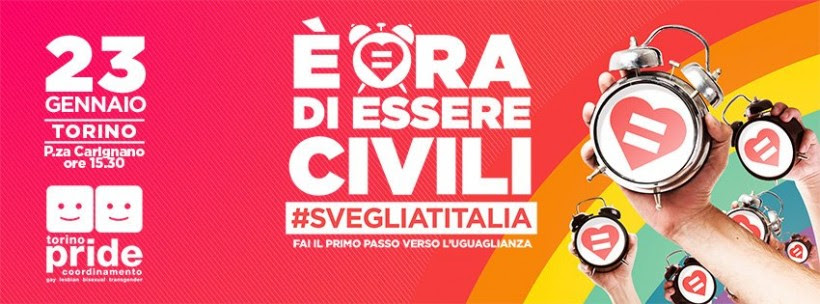 Prendiamo la sveglia dal comodino, stacchiamo l’orologio dal muro, ritiriamo fuori quello da polso, settiamo la sveglia sullo smartphone e portiamo tutto in piazza per un flash mob che sveglierà l’Italia sul tema dei diritti. Faremo suonare nello stesso momento tutto quello che avremo, batteremo il tempo con le mani sulle lancette e alzeremo i nostri cuori egualitari per far capire a chi ci governa che il tempo è davvero scaduto. Perché è davvero ora che in Italia ogni amore venga riconosciuto e che i figli di tutte e tutti siano tutelati. È ora, insomma, di essere civili e di fare un primo passo verso la piena uguaglianza. È ora, ed è già troppo tardi.