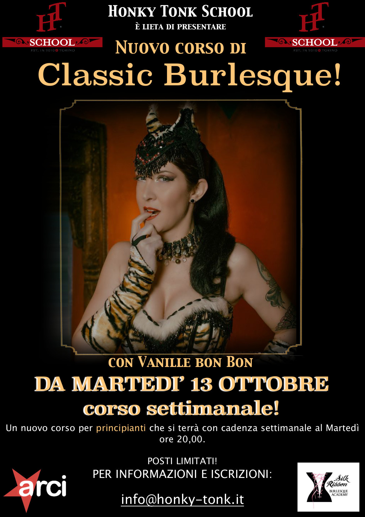 Nel corso verranno affrontati i MOVIMENTI BASE del Burlesque, le tecniche principali e l'USO DEGLI ACCESSORI CLASSICI ( Boa, guanti, calze, ventagli...) e ovviamente a muoversi tutte insieme con le COREOGRAFIE DI GRUPPO.