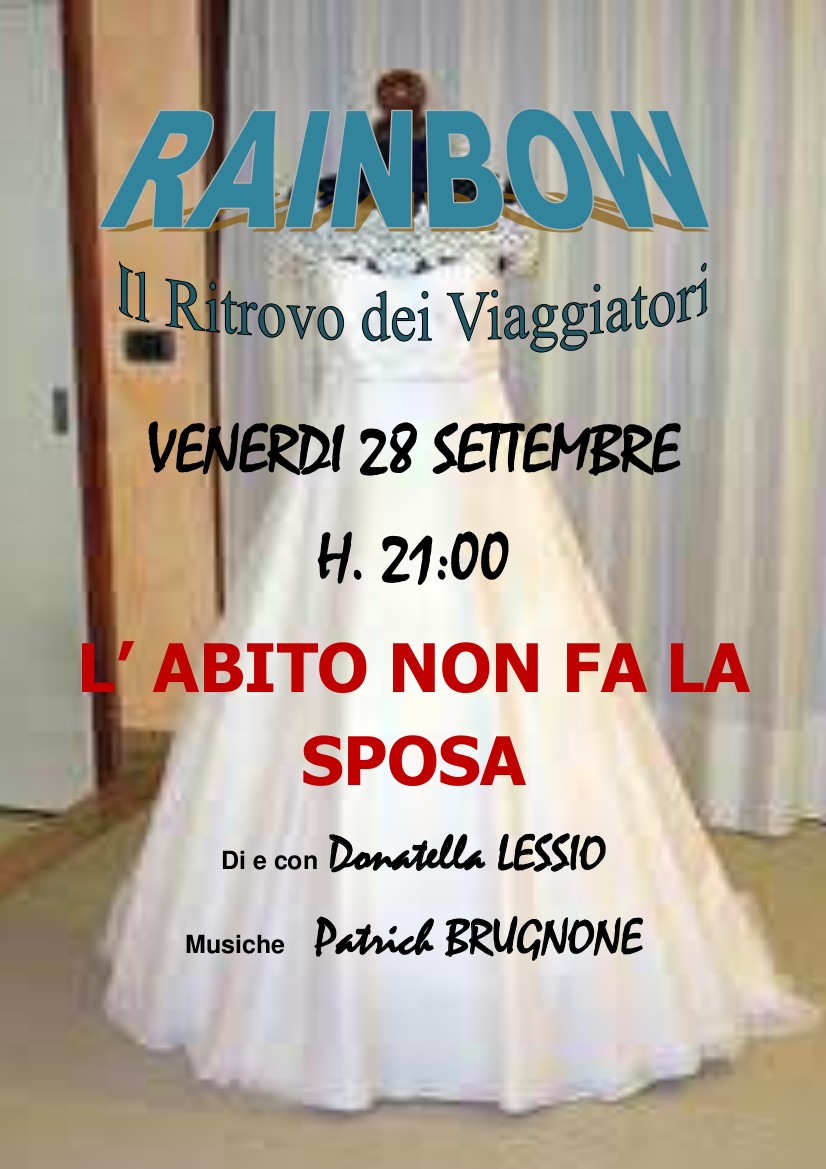 Drago Gattone Teatro presenta L'abito non fa la sposa: una divertente carrellata di follie legate al giorno più bello (si fa per dire) della vita di una donna: dall'incubo delle scarpe col tacco dodici al corsetto assassino che ti fa soffocare, dal pellegrinaggio sacro in cerca delle bomboniere al tentato omicidio della futura suocera, dalla cerimonia in diretta tv al corso prematrimoniale nell'abbazia dello zio frate. Ce n'è per tutte.