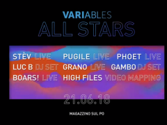 21/06/2018 - 21:00 Variables, in collaborazione con Magazzino sul Po e TUM / TOLK Distribution presenta:Variables All Stars showcase di tutti gli artisti dell'etichetta...