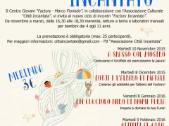03/11/2015 - 11:40 L' Associazione Culturale "Città Incantata" in collaborazione con il "Factory" è lieta di presentarvi un nuovo ciclo di incontri mensili, che da novembre a...