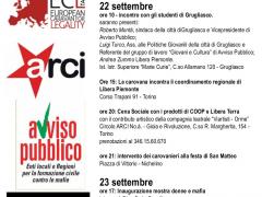 22/09/2012 - 10:00 22/09/2012 - 20:00 La Carovana della Legalità organizzata da ARCI, Libera e Avviso Pubblico, arriva a Torino il prossimo sabato 22 settembre: qua sotto il programma della tappa torinese della...